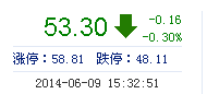 | 今 開: | 53.50 | 成交量: | 6.34萬手 | 振 幅: | 3.05% |