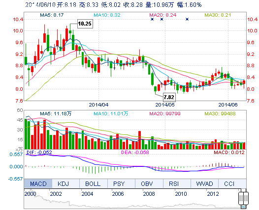 | 今 開: | 8.18 | 成交量: | 10.96萬手 | 振 幅: | 3.80% |