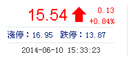 | 最 高: | 15.58 | 成交額: | 4703.45萬元 | 換手率: | 2.29% |