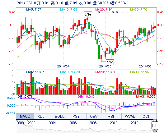 | 今 開: | 8.01 | 成交量: | 6.83萬手 | 振 幅: | 3.12% |