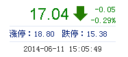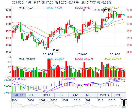 | 今 開: | 16.97 | 成交量: | 15.73萬手 | 振 幅: | 2.98% |