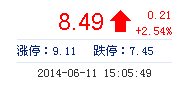 今開: 8.26 成交量: 18.04萬(wan) 手 振幅: 4.59% 最高: 8.60 成交額: 1.53億(yi) 元 換手率: 2.02% 最低: 8.22 總市值: 75.66億(yi) 市淨率: 2.83 昨收: 8.28 流通市值: 75...