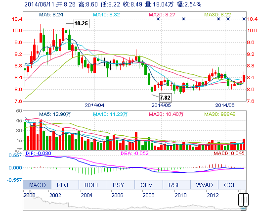 | 今 開: | 8.26 | 成交量: | 18.04萬手 | 振 幅: | 4.59% |