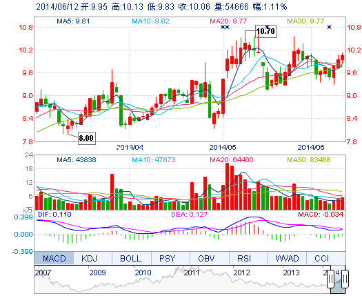 | 今 開: | 9.95 | 成交量: | 5.47萬手 | 振 幅: | 3.02% |