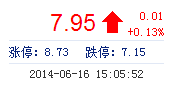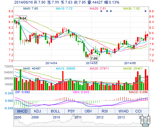 | 今 開: | 7.90 | 成交量: | 4.44萬手 | 振 幅: | 2.02% |