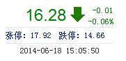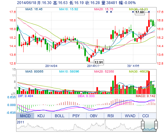 | 今 開: | 16.30 | 成交量: | 3.85萬手 | 振 幅: | 2.70% |
