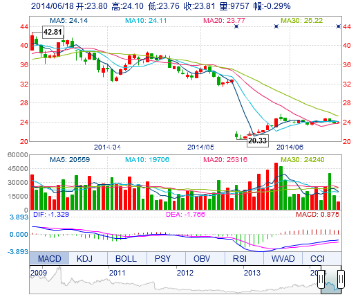 | 今 開: | 23.80 | 成交量: | 9757手 | 振 幅: | 1.42% |