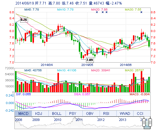 | 今 開: | 7.71 | 成交量: | 4.67萬手 | 振 幅: | 4.42% |