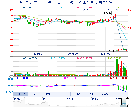 | 今 開: | 25.80 | 成交量: | 12.02萬手 | 振 幅: | 4.32% |