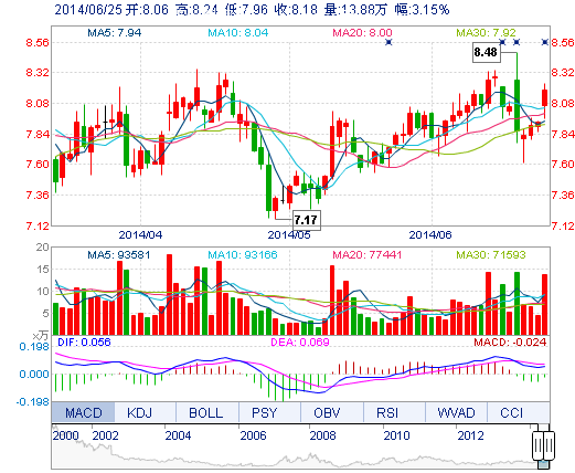 | 今 開: | 8.06 | 成交量: | 13.88萬手 | 振 幅: | 3.53% |