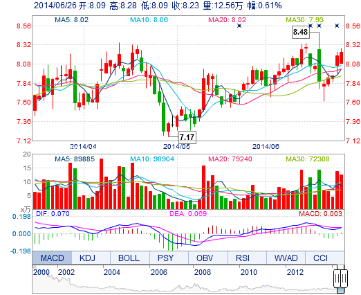 | 今 開: | 8.09 | 成交量: | 12.56萬手 | 振 幅: | 2.32% |