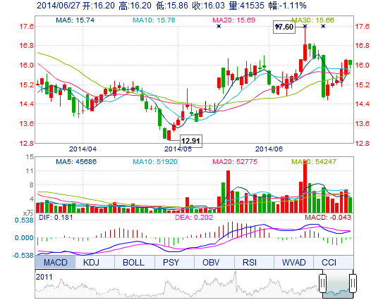 | 今 開: | 16.20 | 成交量: | 4.15萬手 | 振 幅: | 2.10% |