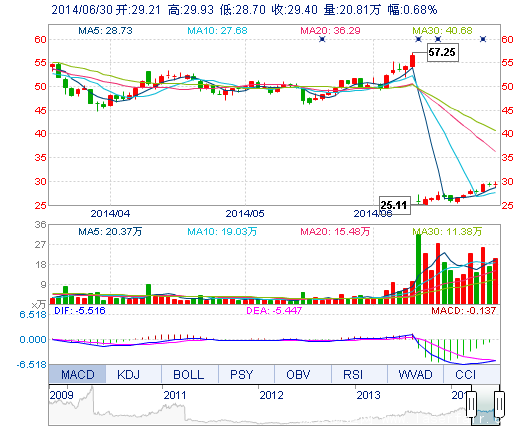 今開: 29.21 成交量: 20.81萬(wan) 手 振幅: 4.21% 最高: 29.93 成交額: 6.10億(yi) 元 換手率: 3.28% 最低: 28.70 總市值: 192.53億(yi) 市淨率: 5.27 昨收: 29.20 流通市值...
