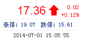 | 最 高: | 17.62 | 成交額: | 3.03億元 | 換手率: | 1.82% |