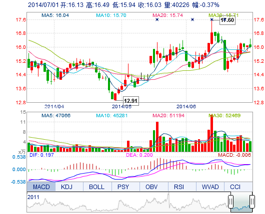 | 今 開: | 16.13 | 成交量: | 4.02萬手 | 振 幅: | 3.42% |