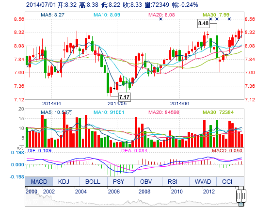 | 今 開: | 8.32 | 成交量: | 7.23萬手 | 振 幅: | 1.92% |