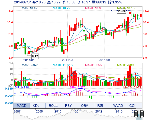 | 今 開: | 10.76 | 成交量: | 8.80萬手 | 振 幅: | 3.81% |
