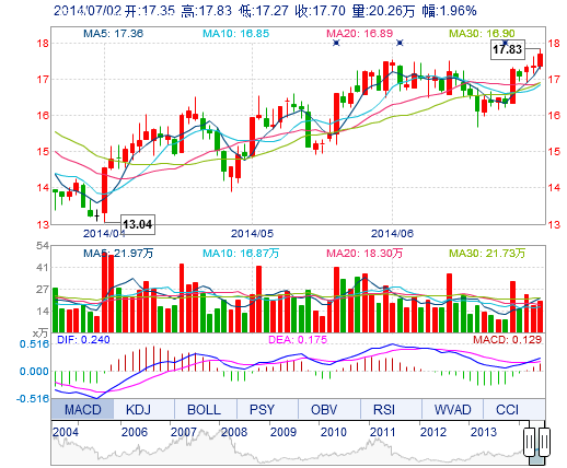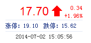 | 最 高: | 17.83 | 成交額: | 3.57億元 | 換手率: | 2.12% |
