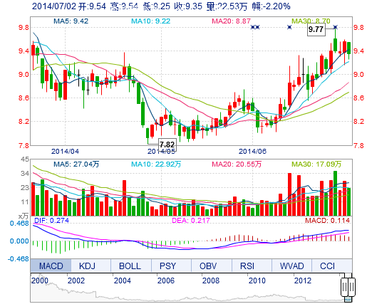 | 最 高: | 9.54 | 成交額: | 2.11億元 | 換手率: | 2.53% |