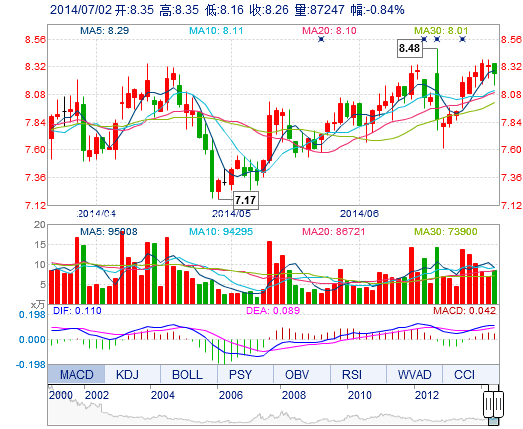 | 今 開: | 8.35 | 成交量: | 8.72萬手 | 振 幅: | 2.28% |