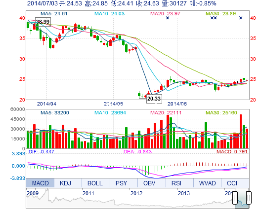 | 今 開: | 24.53 | 成交量: | 3.01萬手 | 振 幅: | 1.77% |