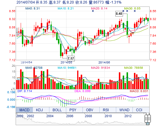 | 今 開: | 8.35 | 成交量: | 8.68萬手 | 振 幅: | 2.03% |