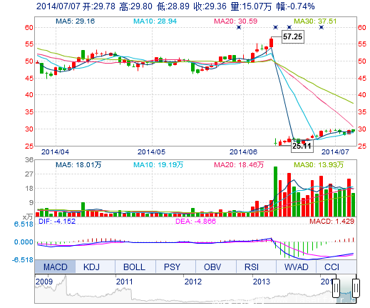 | 今 開: | 29.78 | 成交量: | 15.07萬手 | 振 幅: | 3.08% |