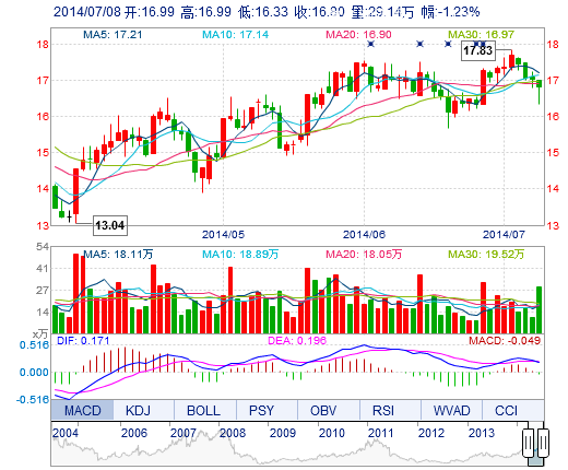 | 今 開: | 16.99 | 成交量: | 29.14萬手 | 振 幅: | 3.88% |