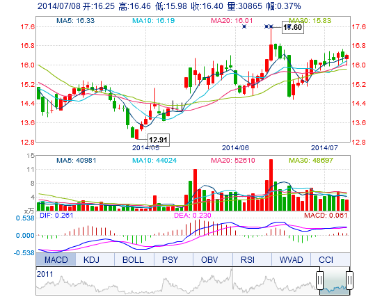 | 今 開: | 16.25 | 成交量: | 3.09萬手 | 振 幅: | 2.94% |