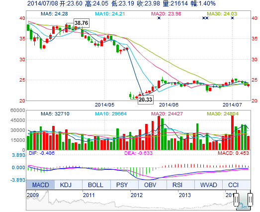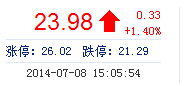 | 今 開: | 23.60 | 成交量: | 2.16萬手 | 振 幅: | 3.64% |