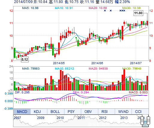 | 最 高: | 11.80 | 成交額: | 1.66億元 | 換手率: | 7.37% |