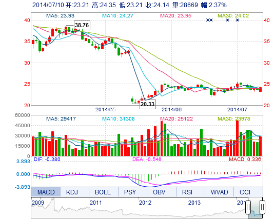 | 今 開: | 23.21 | 成交量: | 2.87萬手 | 振 幅: | 4.83% |