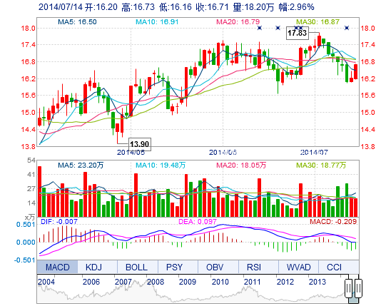 | 最 高: | 16.73 | 成交額: | 3.01億元 | 換手率: | 1.90% |