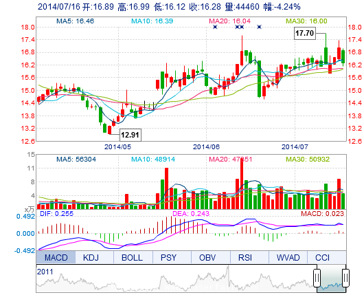 | 今 開: | 16.89 | 成交量: | 4.45萬手 | 振 幅: | 5.12% |