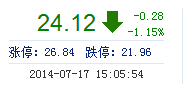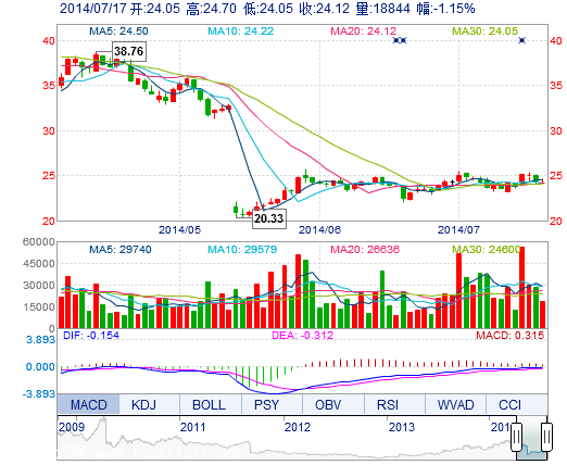 | 今 開: | 24.05 | 成交量: | 1.88萬手 | 振 幅: | 2.66% |