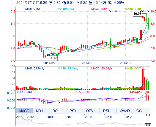 | 最 高: | 9.76 | 成交額: | 3.78億元 | 換手率: | 9.19% |