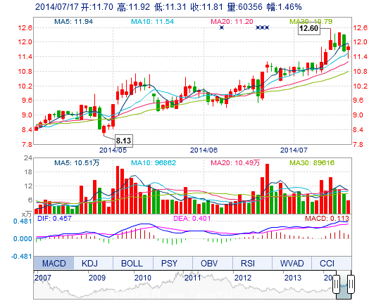 | 今 開: | 11.70 | 成交量: | 6.04萬手 | 振 幅: | 5.24% |