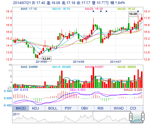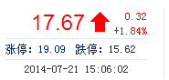 | 今 開: | 17.40 | 成交量: | 10.75萬手 | 振 幅: | 5.19% |