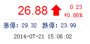 | 最 高: | 26.94 | 成交額: | 3.12億元 | 換手率: | 1.87% |
