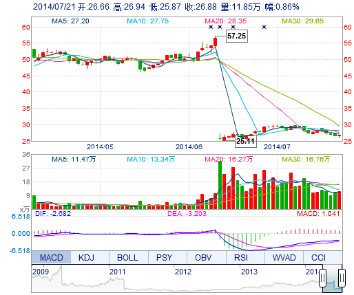 今開: 26.66 成交量: 11.85萬(wan) 手 振幅: 4.02% 最高: 26.94 成交額: 3.12億(yi) 元 換手率: 1.87% 最低: 25.87 總市值: 176.02億(yi) 市淨率: 4.82 昨收: 26.65 流通市值...