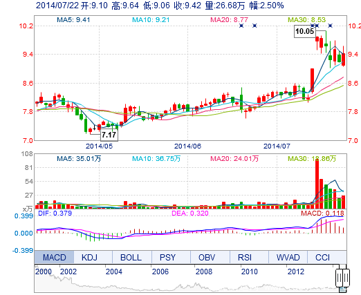 | 最 高: | 9.64 | 成交額: | 2.50億元 | 換手率: | 6.11% |