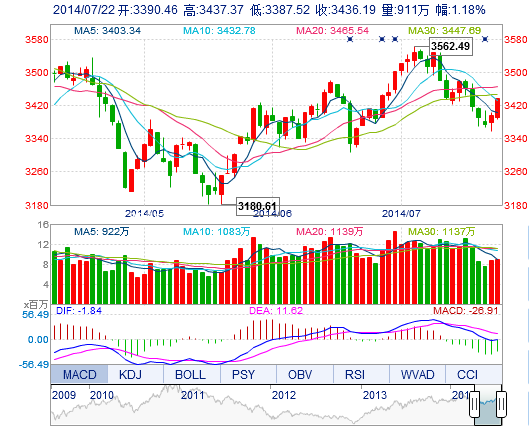 今開: 3390.46 最高: 3437.37 昨收: 3396.05 最低: 3387.52 成交量: 911.09萬(wan) 手 振幅: 1.47% 成交額: 154.10億(yi) 元