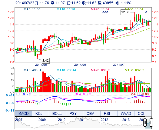 | 今 開: | 11.76 | 成交量: | 4.39萬手 | 振 幅: | 2.98% |