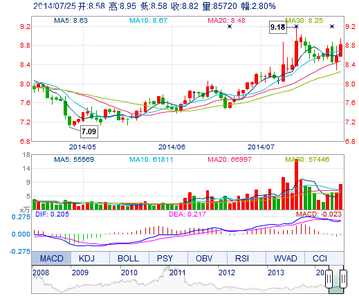 今 開: | 8.58 | 成交量: | 8.57萬手 | 振 幅: | 4.31% |
