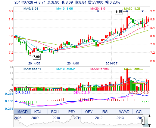 | 今 開: | 8.71 | 成交量: | 7.70萬手 | 振 幅: | 2.38% |
