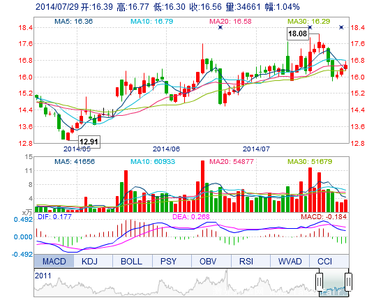 | 今 開: | 16.39 | 成交量: | 3.47萬手 | 振 幅: | 2.87% |