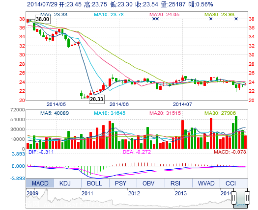 | 今 開: | 23.45 | 成交量: | 2.52萬手 | 振 幅: | 1.92% |