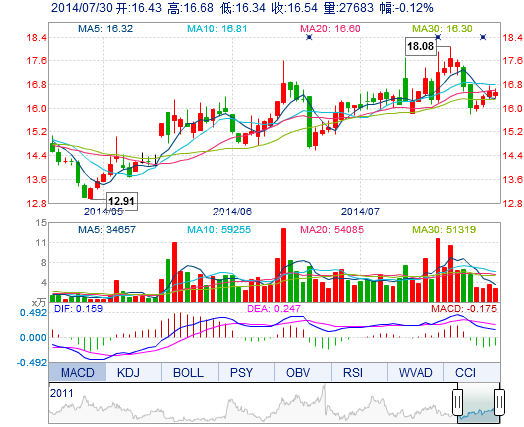 | 今 開: | 16.43 | 成交量: | 2.77萬手 | 振 幅: | 2.05% |