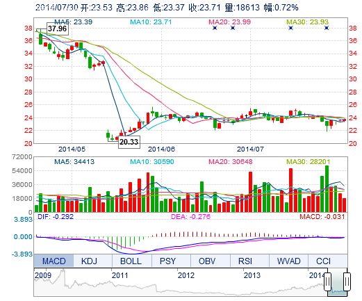 | 最 高: | 23.86 | 成交額: | 4397.42萬元 | 換手率: | 0.36% |