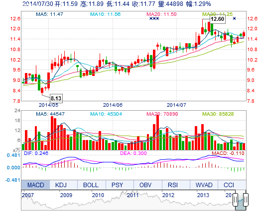 | 今 開: | 11.59 | 成交量: | 4.49萬手 | 振 幅: | 3.87% |